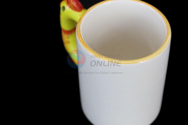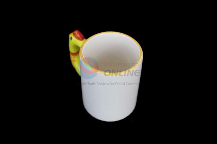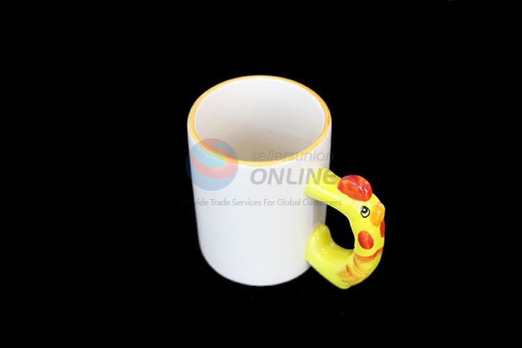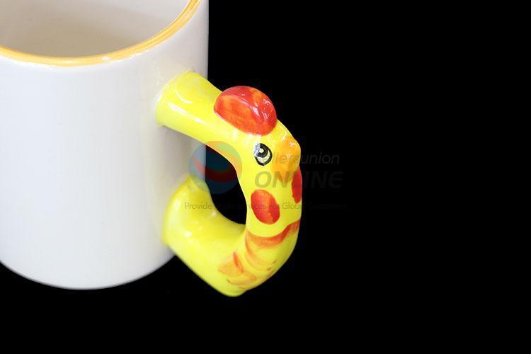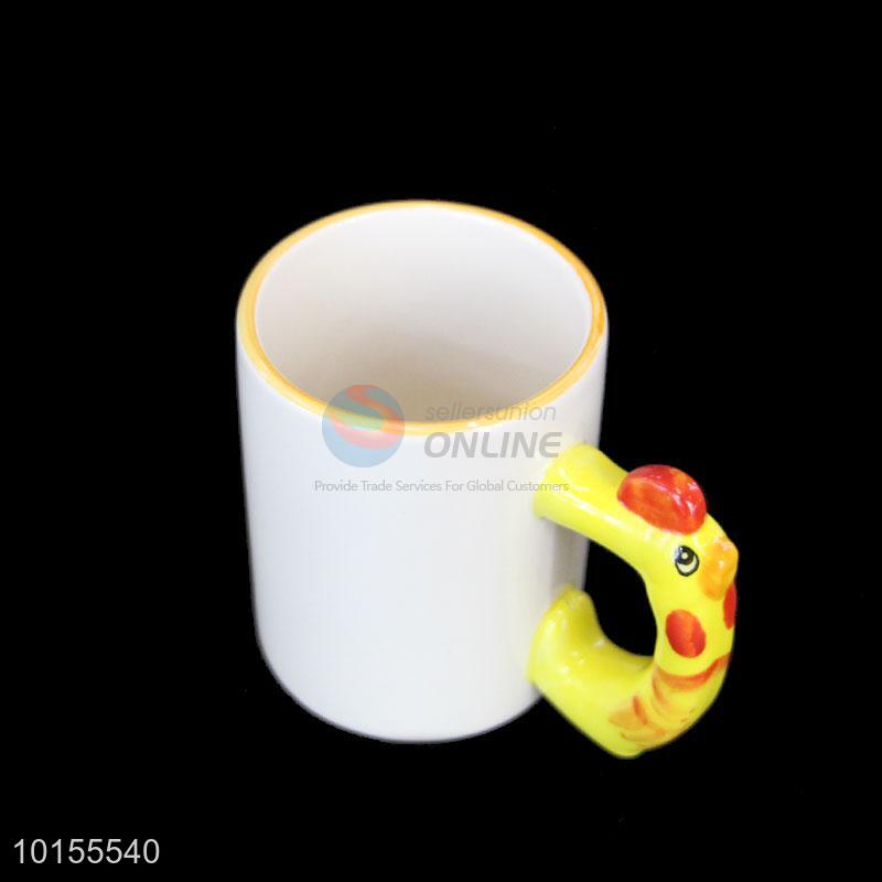 Fashion design white ceramic cup with yellow cute handle
