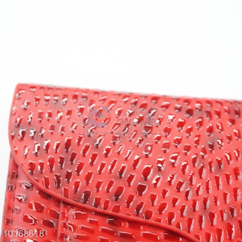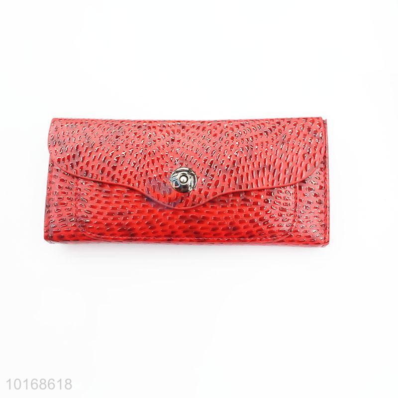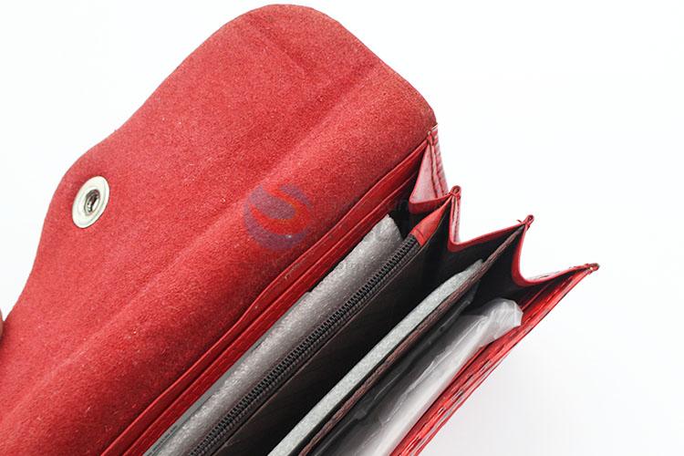 Red snake skin long ladies wallet with zipper