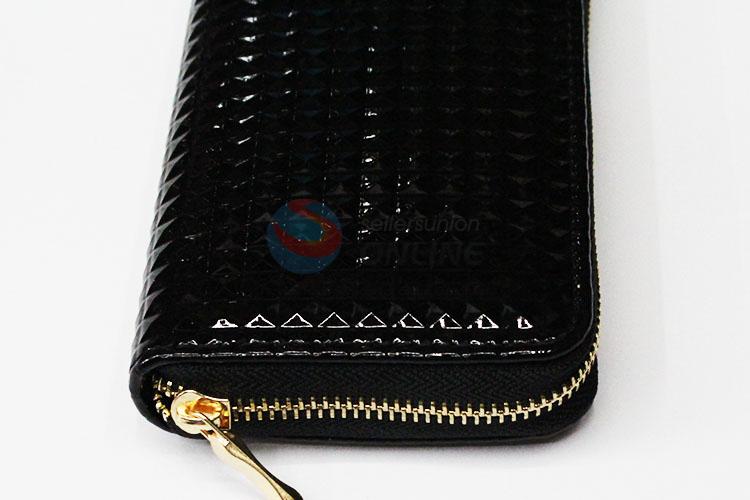 Factory Hot Sell Black Rectangular PU Purse/Wallet for Ladies