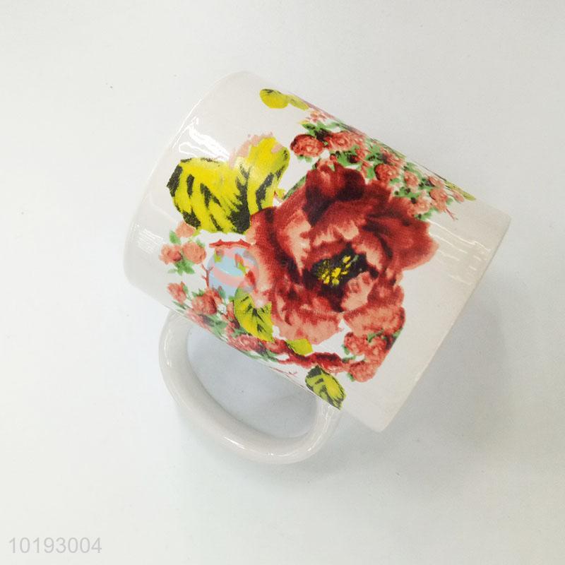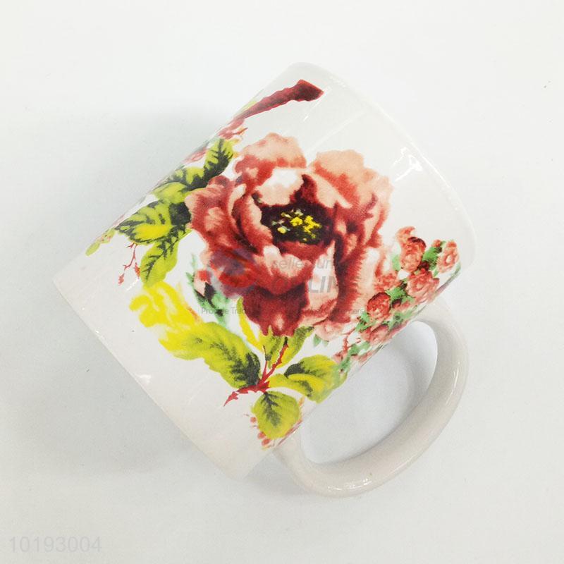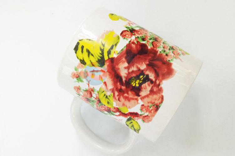 Good quality flower pattern ceramic water cup with handle