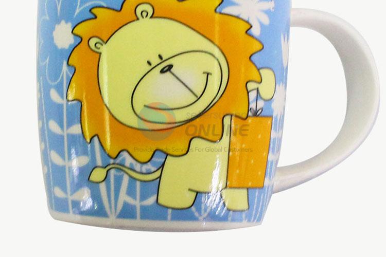 Promotioanl Blue Color Lion Pattern Lovely Ceramic Cup