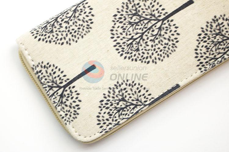Nice Tree Printed Canvas Purse&Wallet with Copper Zipper for Sale