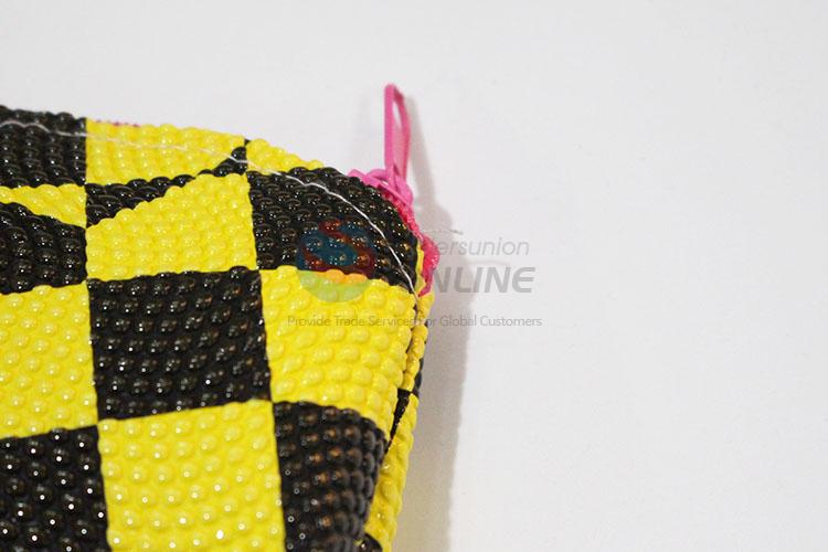Factory Direct Yellow and Black Check Pattern Coin Bag with Wrist Strap