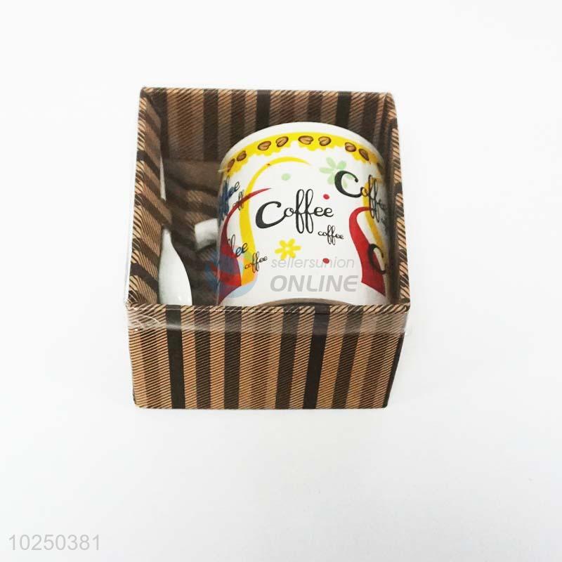 Factory price customized printed promotional ceramic cup with spoon