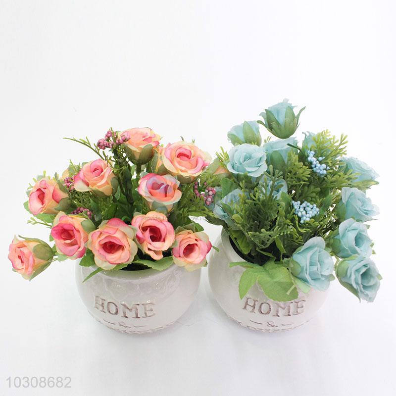 Lovely round ceramic simulation rose bonsai