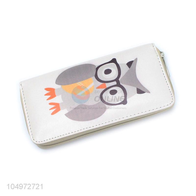 Bottom Price Owl Pattern Large Capacity Split Leather Card Holder Women Purse