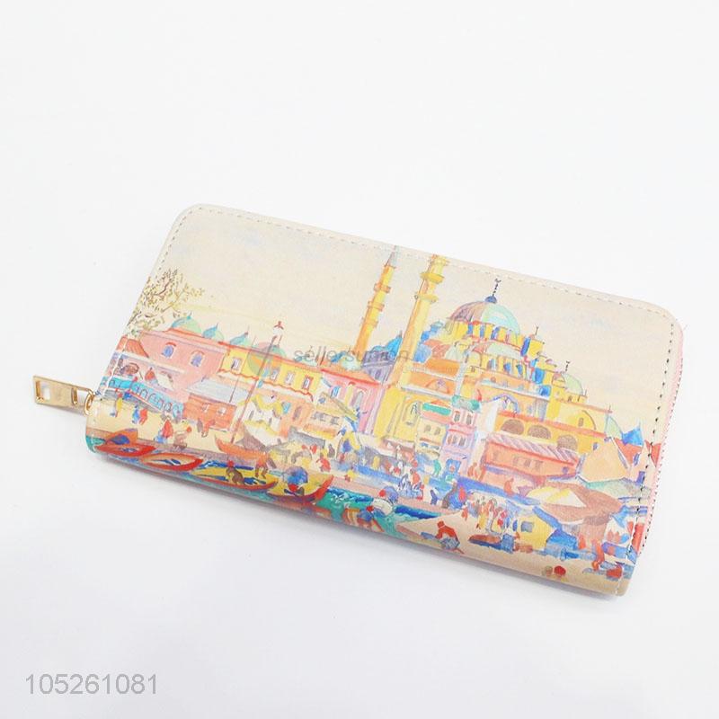 Fashion Designer PU Leather Colorful Building Printed Women Wallet