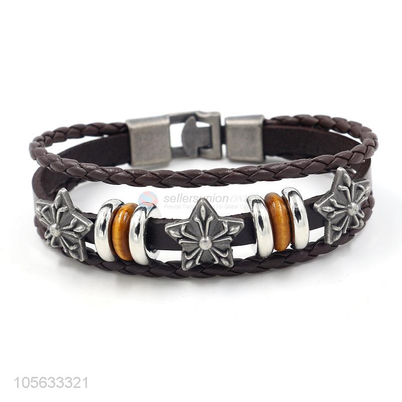 • China maker handmade retro multilayer leather beaded bracelet for men
