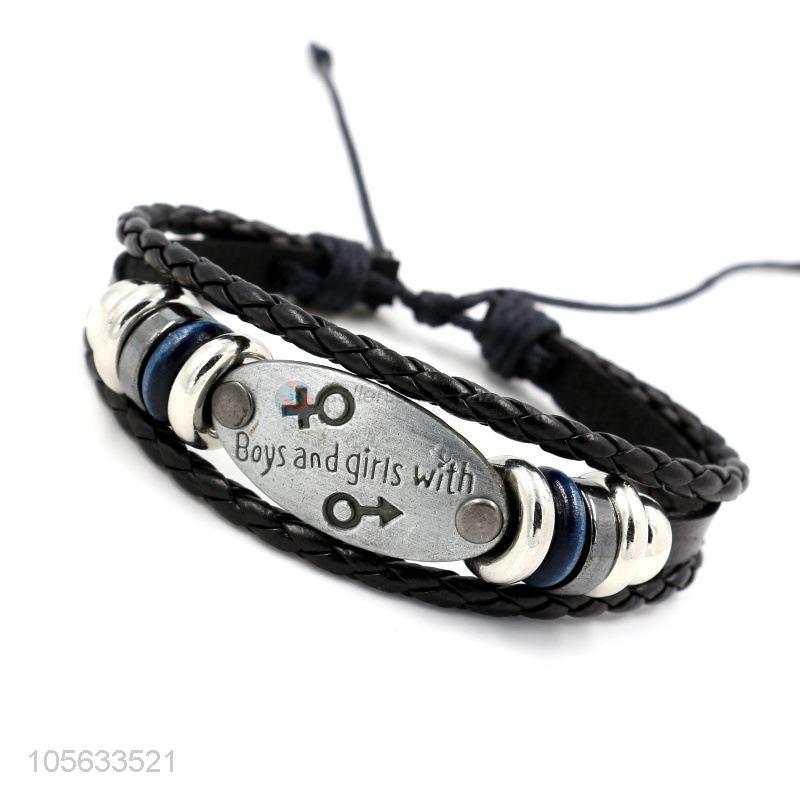 • Top selling fashion charm custom men braided leather handmade bracelet