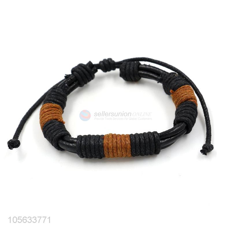 • China maker handmade retro multilayer leather beaded bracelet for men