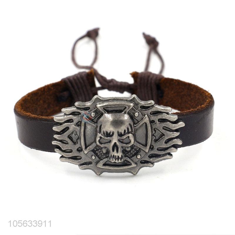 Professional manufacturer mens adjustable leather bracelet with skull charms