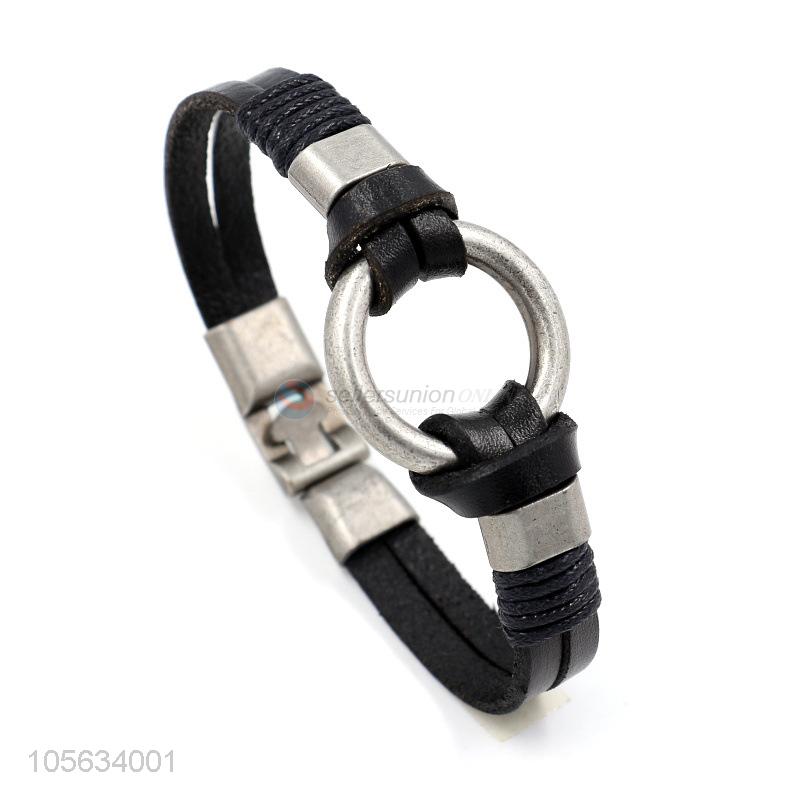 Low price multitier vintage men leather bracelet with circle charms