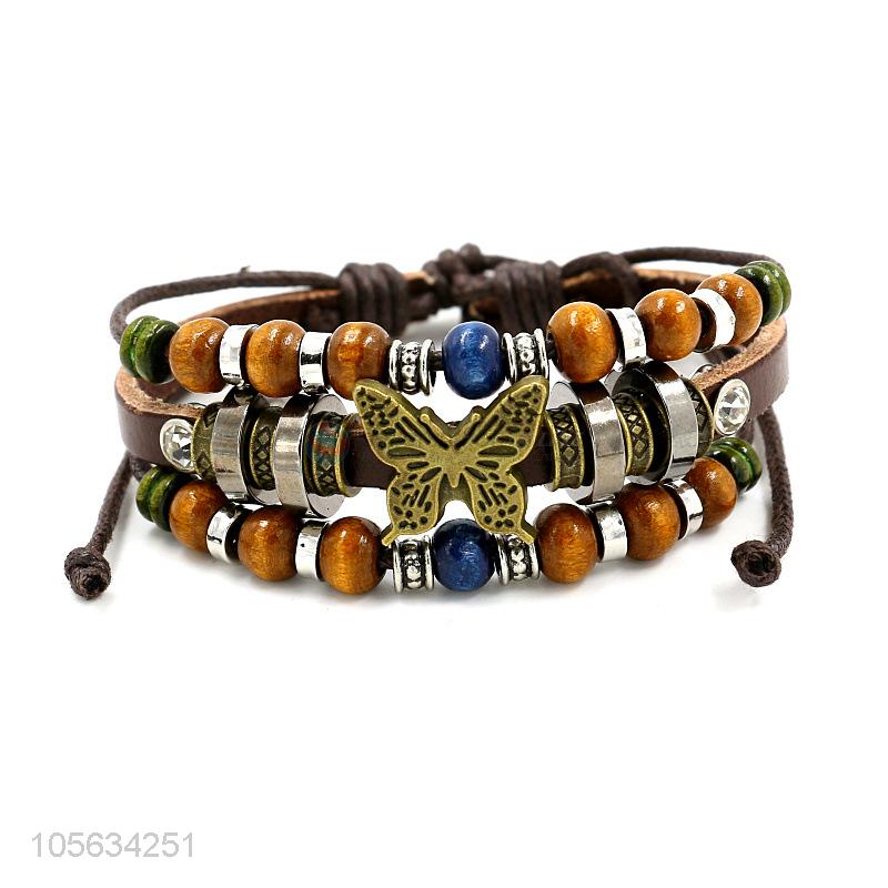 China wholesale fashion charm custom men leather handmade bracelet