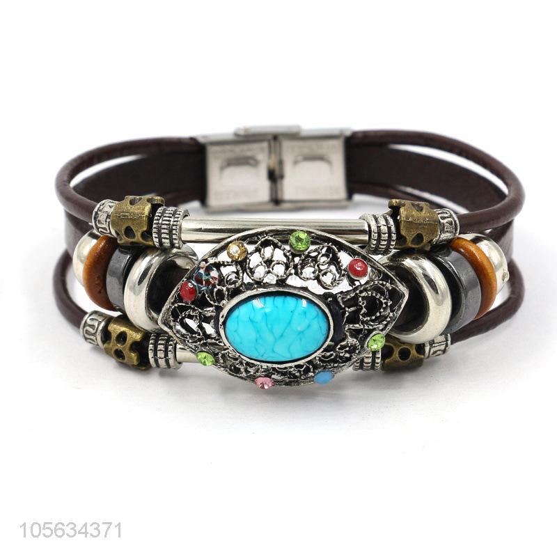 China supplier multilayer leather bracelet retro alloy bracelets