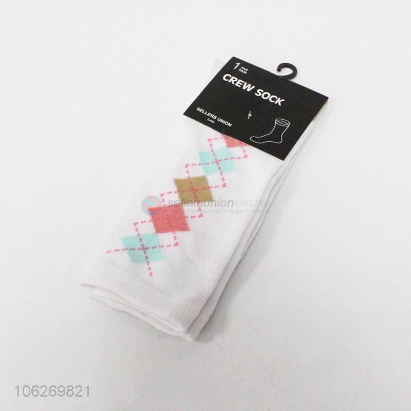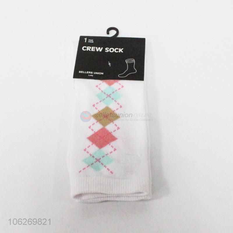 Best selling diamond pattern women crew socks