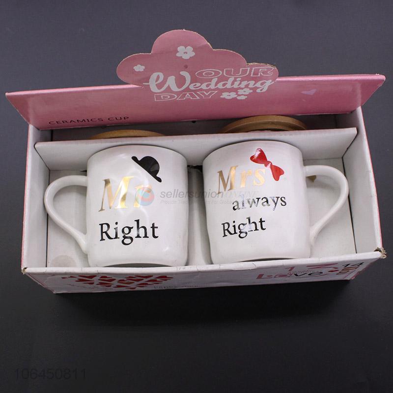 Premium Quality Valentine'S Day Gift Ceramic Couple Cup With Lid