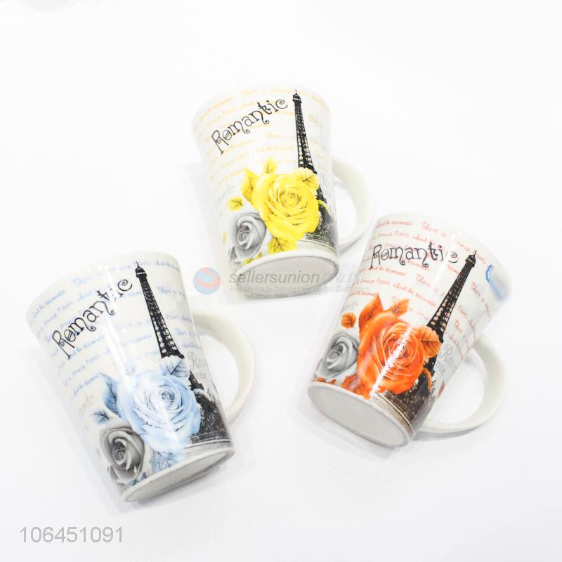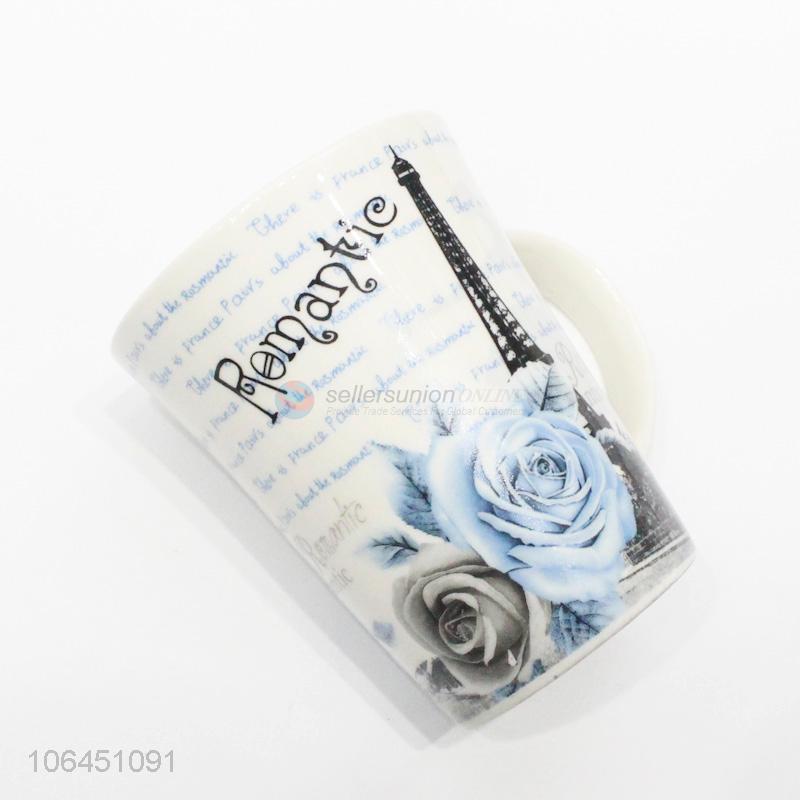 Superior quality rose&tower pattern ceramic cup with handle