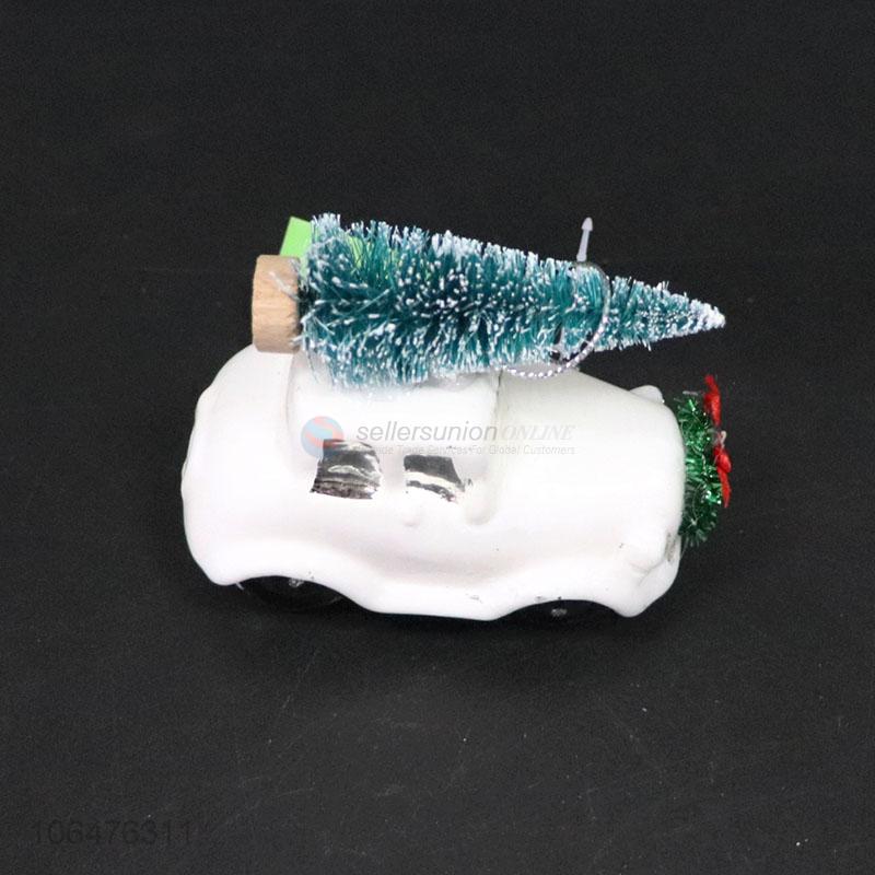 Promotional Christmas ornaments painted mini glass car mold with tree