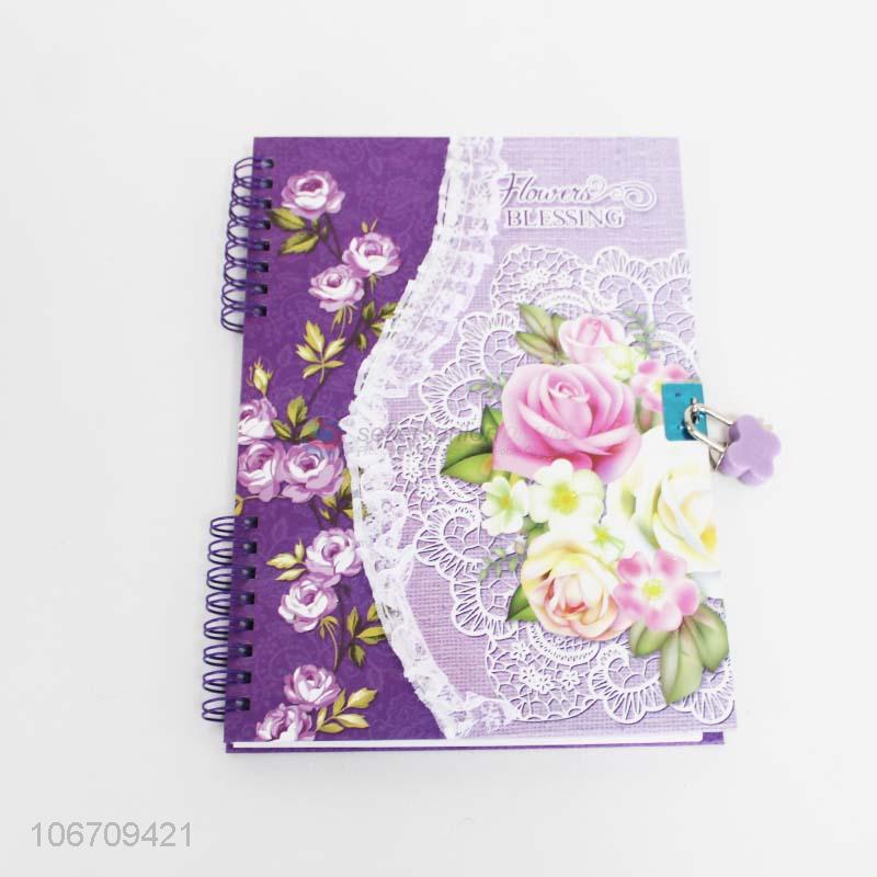 Good quality wholesale beautiful flower printed spiral notebook