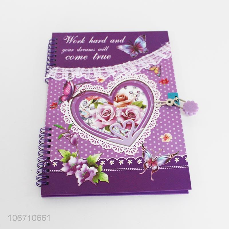 Wholesale delicate butterfly printed notebook with lock and key