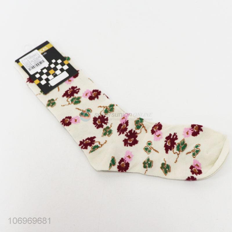 OEM flower jacquard women winter warm mid-calf length sock