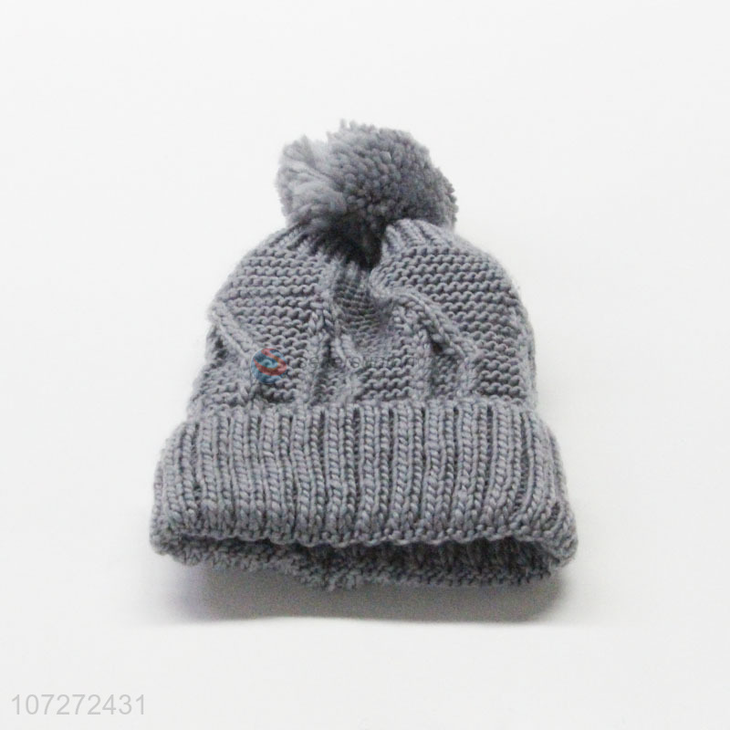 Premium products women winter fleece beanie hat knitted hat with pompom
