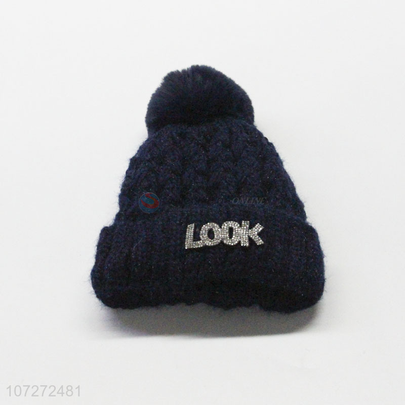 Best sale ladies winter knitted hat fleece beanie hat with shiny stones