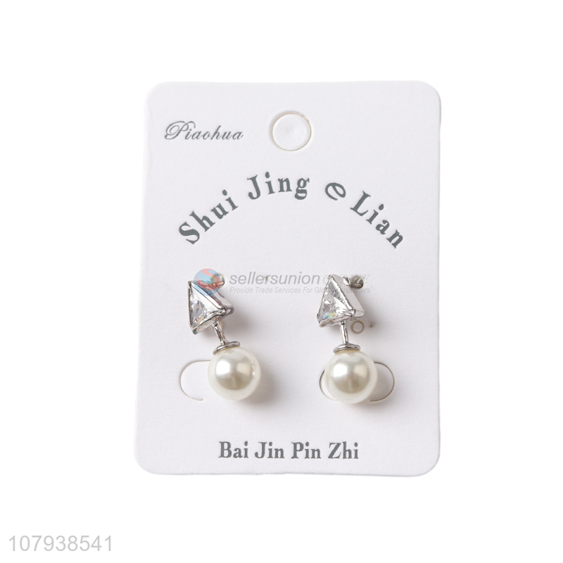 Hot selling silver women earrings with pearl pendant for jewelry