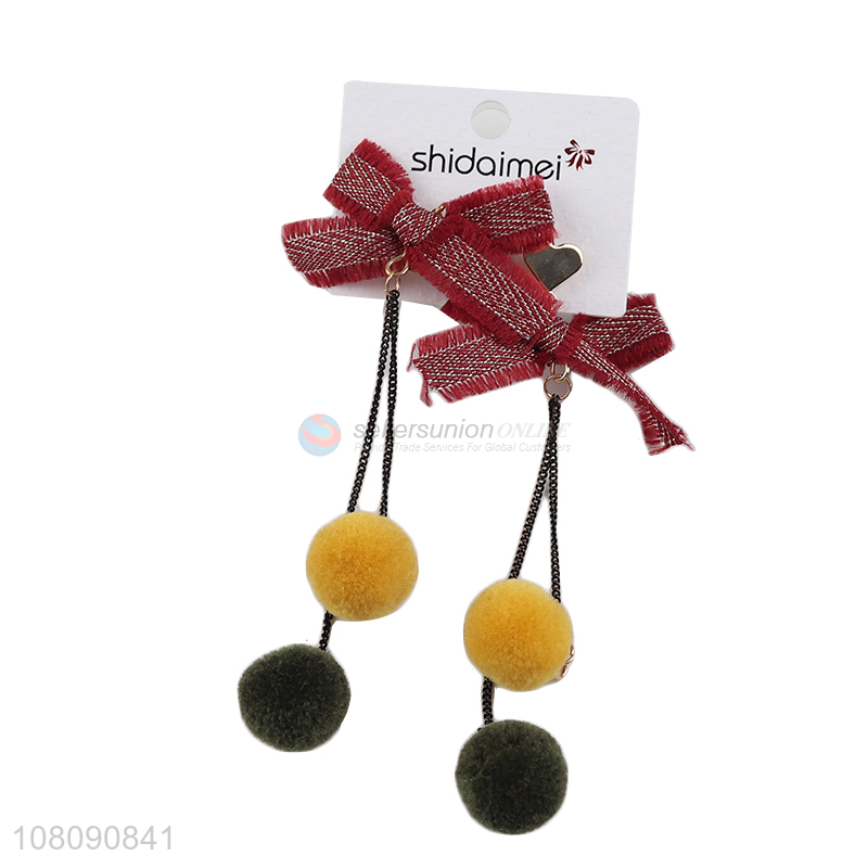 Best Sale Fashion Bowknot Fur Ball Drop Earring Stud Earring
