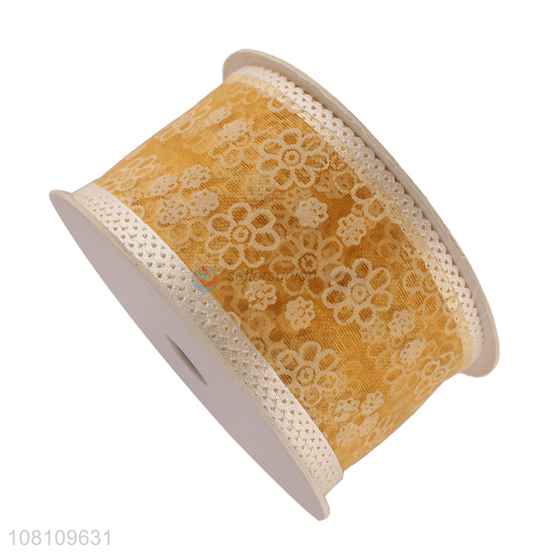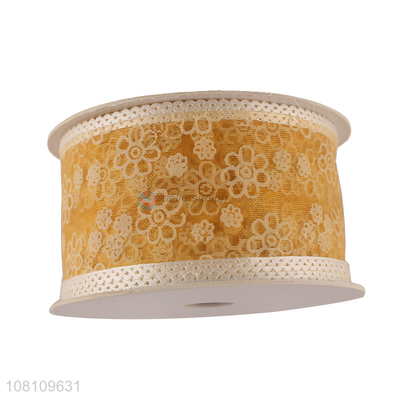 Hot selling flower printed organza ribbon Christmas ribbon