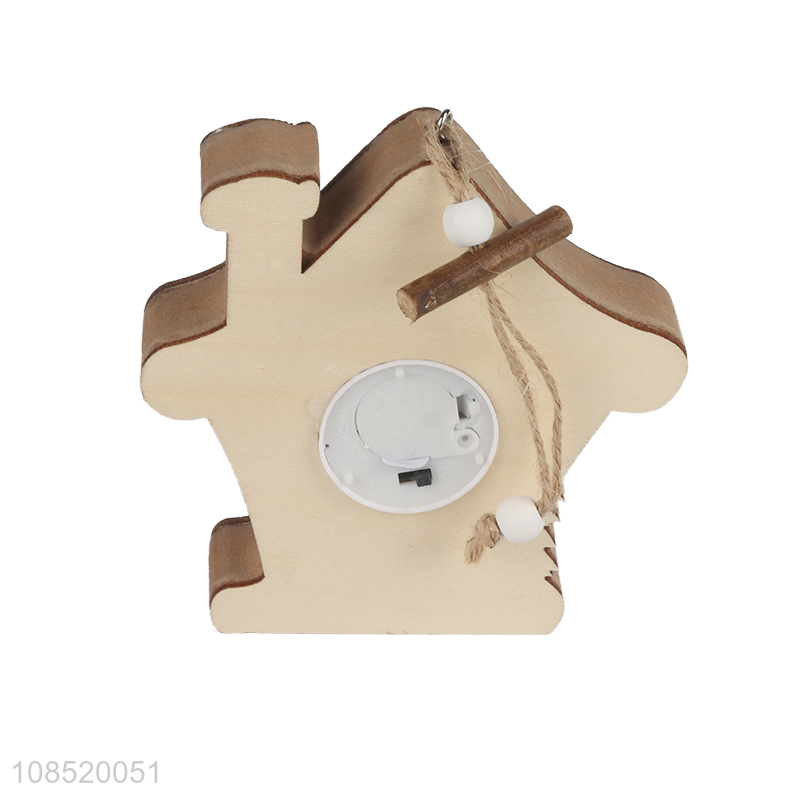 Factory price wooden Christmas tree hanging ornament with led light