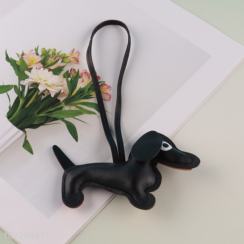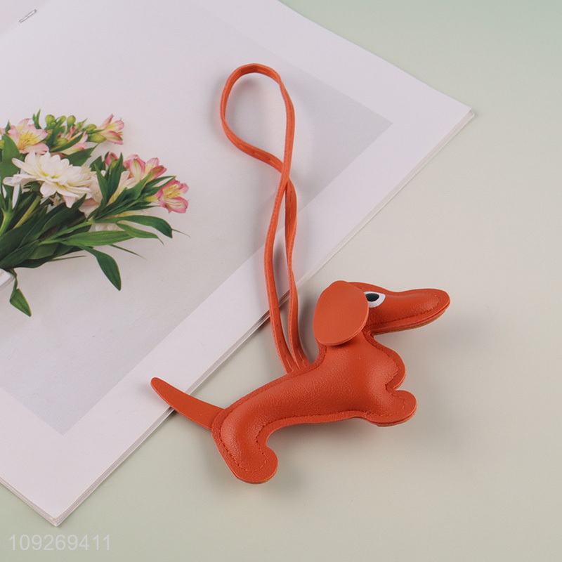 Good quality cartoon puppy leather keychain key ring bag pendant